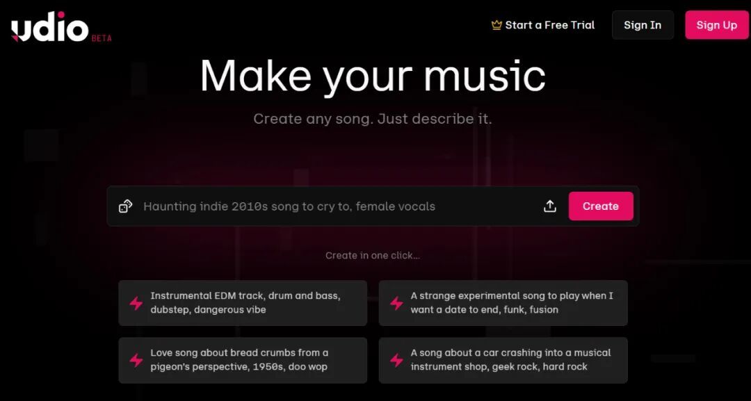 在AI音乐的垂直领域更为知名的海外玩家是Suno和Udio。两家公司均致力于让AI能够根据文字描述,直接生成包含人声、歌词和编曲的完整歌曲。