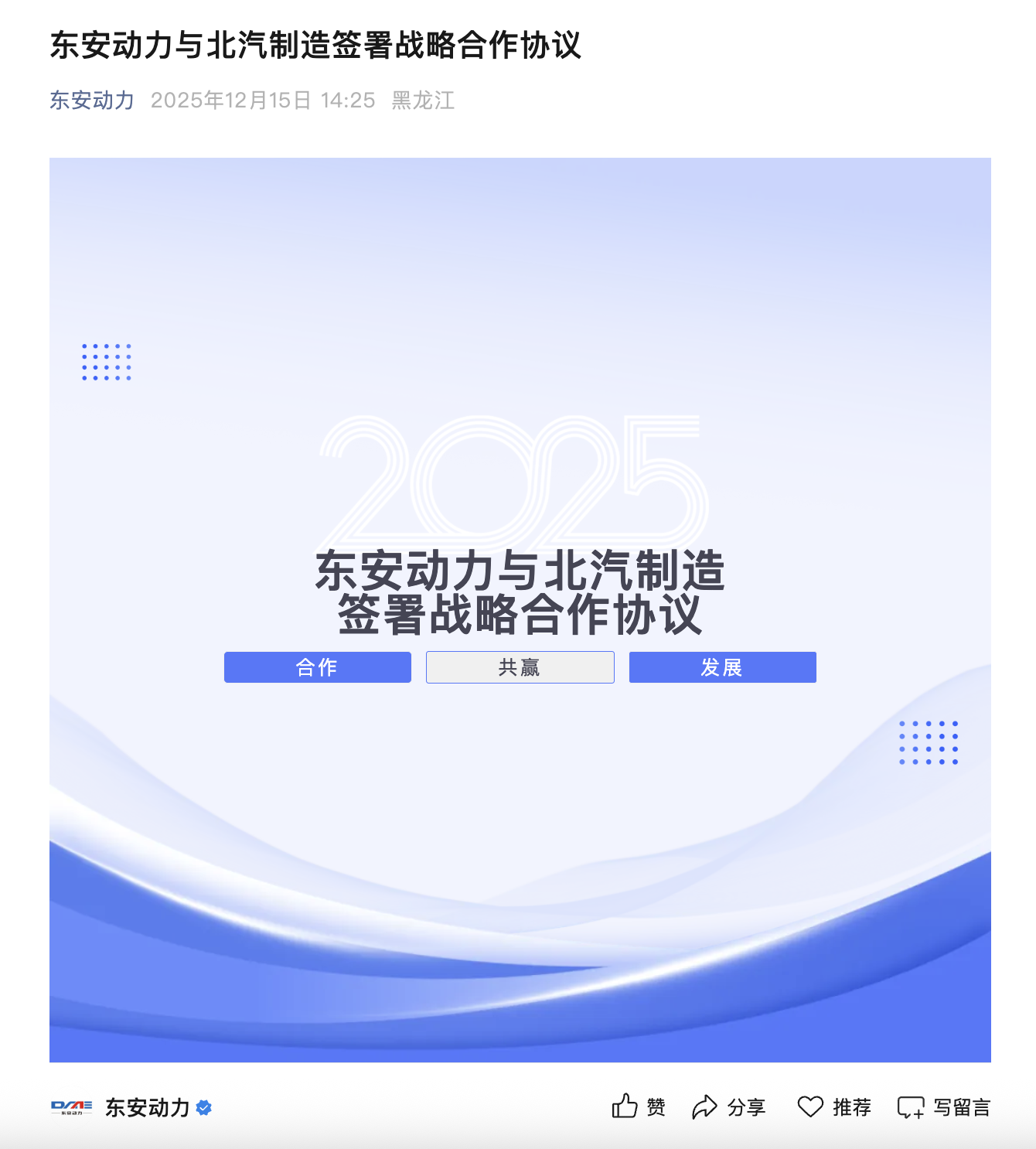 东安动力联手北汽制造 研发下一代越野车动力系统 凤凰网科技讯 12月15日,近日,北京汽车制造厂有限公司与哈尔滨东安汽车动力股份有限公司正式签署战略合作协议,并共同为“新动力联合创新实验室”揭牌。 北汽制造旗下拥有212等经典越野车型,东安动力则为国内动力总成供应商。根据协议,双方将在传统燃油及新能源动力领域展开合作,目前已累计立项超十个项目,覆盖212越野车、王牌MPV及卡路里皮卡等车型,相关合作车型累计销量已突破五万台。 双方表示,将基于联合实验室聚焦越野性能提升与新能源技术落地,针对下一代越野车动力系统进行联合研发。 Published by 风君子 独自遨游何稽首 揭天掀地慰生平 View all posts by 风君子