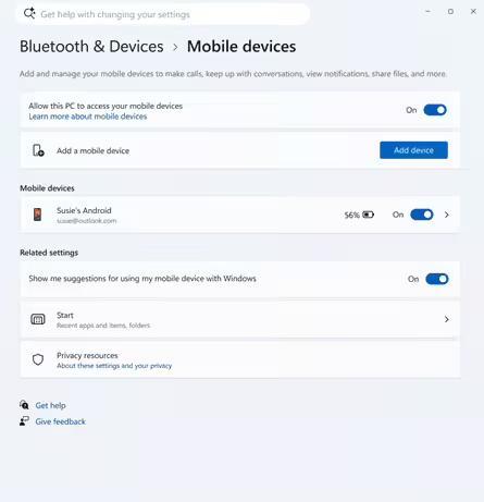 用户可以直接在 Windows 电脑的“设置”中,通过导航至“蓝牙和设备”部分下的“移动设备”来添加和管理您的移动设备。IT之家附上相关截图如下: