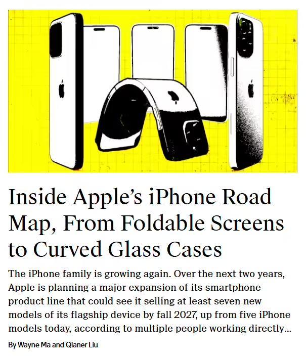 据多位直接参与相关工作的知情人士透露,未来两年内,苹果计划大幅扩展其智能手机产品线,到 2027 年秋季,将至少推出七款新机型,较当前的五款 iPhone 显著增加。