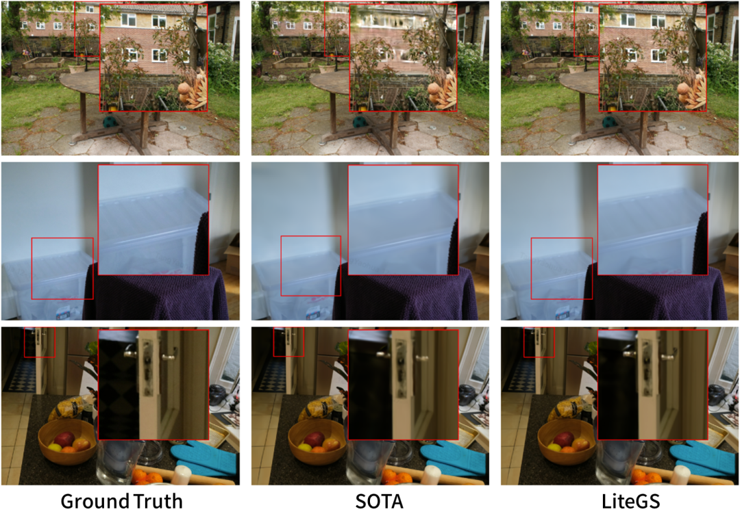 在达到与当前质量最优方案同等水平时,LiteGS可获得高达10.8倍的训练加速,且参数量减少一半以上;