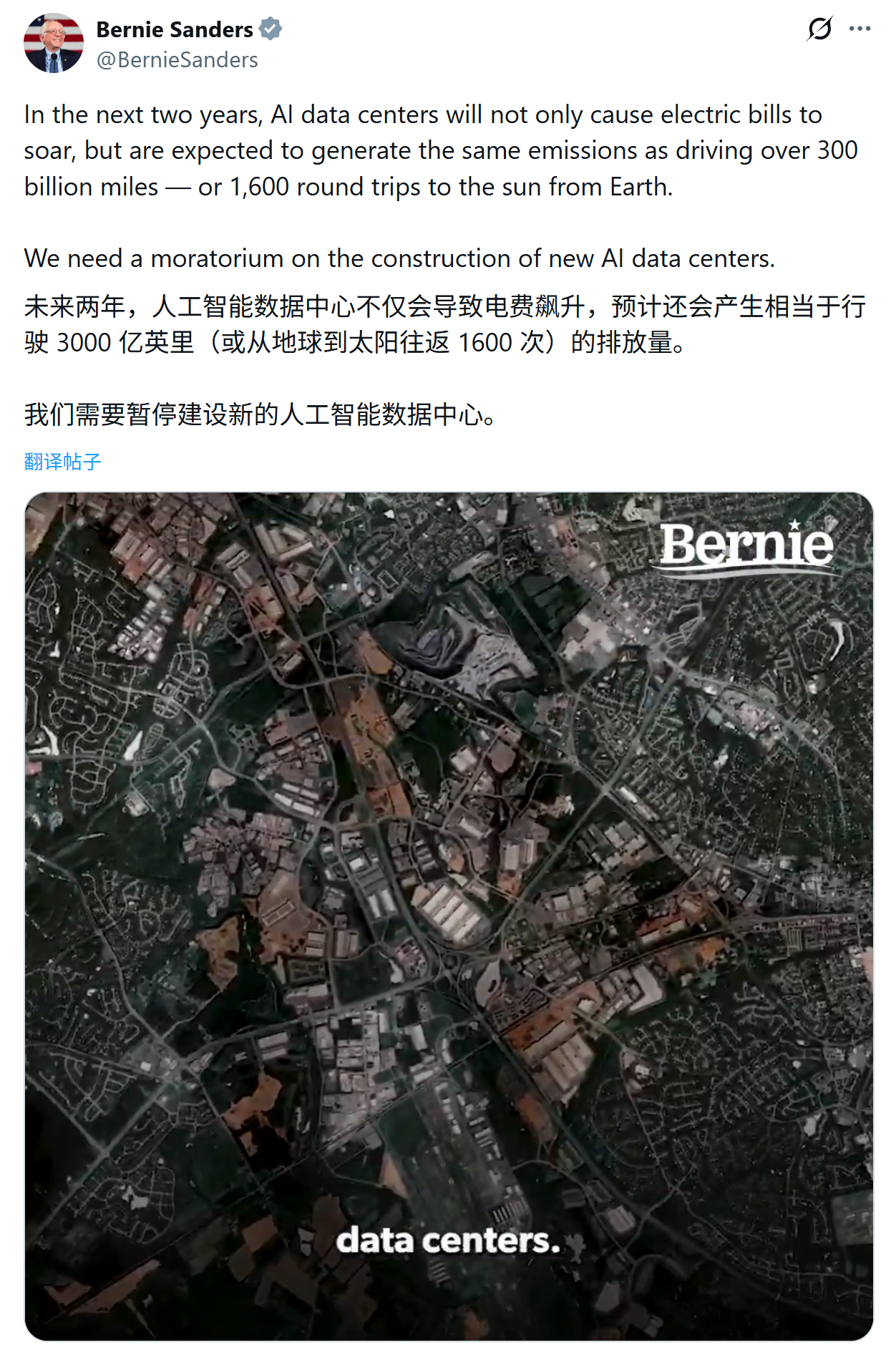 同时,数据中心的高能耗特性将推高居民电费,其产生的碳排放量相当惊人,约等于汽车行驶 3000 亿英里的排放总和。基于此,他强调必须立即对新数据中心的建设实施“冻结令”,以评估其社会影响。