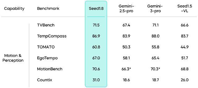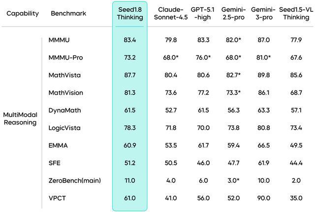 此外,豆包1.8在多模态推理任务中超越了前代模型Seed1.5-VL,在大部分任务中接近目前最先进的Gemini-3-Pro。