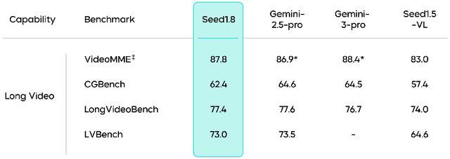 豆包1.8在长视频理解任务中同样表现突出。