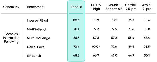 该模型在多项复杂指令基准中保持了与业界领先模型接近的表现。