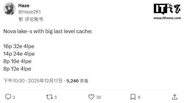 从核心结构来看,这些处理器不仅包含性能核与能效核,还将集成 4 个 LPE 低功耗能效核心。目前的爆料显示,bLLC 大缓存方案将仅限于不锁频型号,普通型号是否会采用该设计尚未明确。