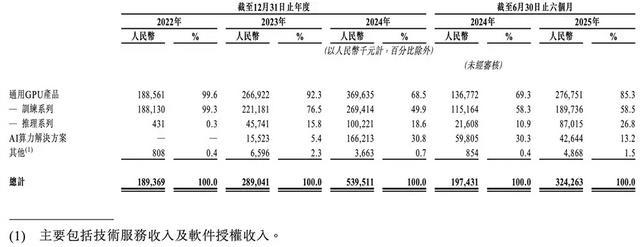 近三年半,其超过一半的收入均来自训练系列通用GPU产品。