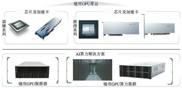 其通用GPU产品有两条产品线,共同实现AI计算领域的全面覆盖,支持从复杂模型开发到高效生产部署的各种应用。