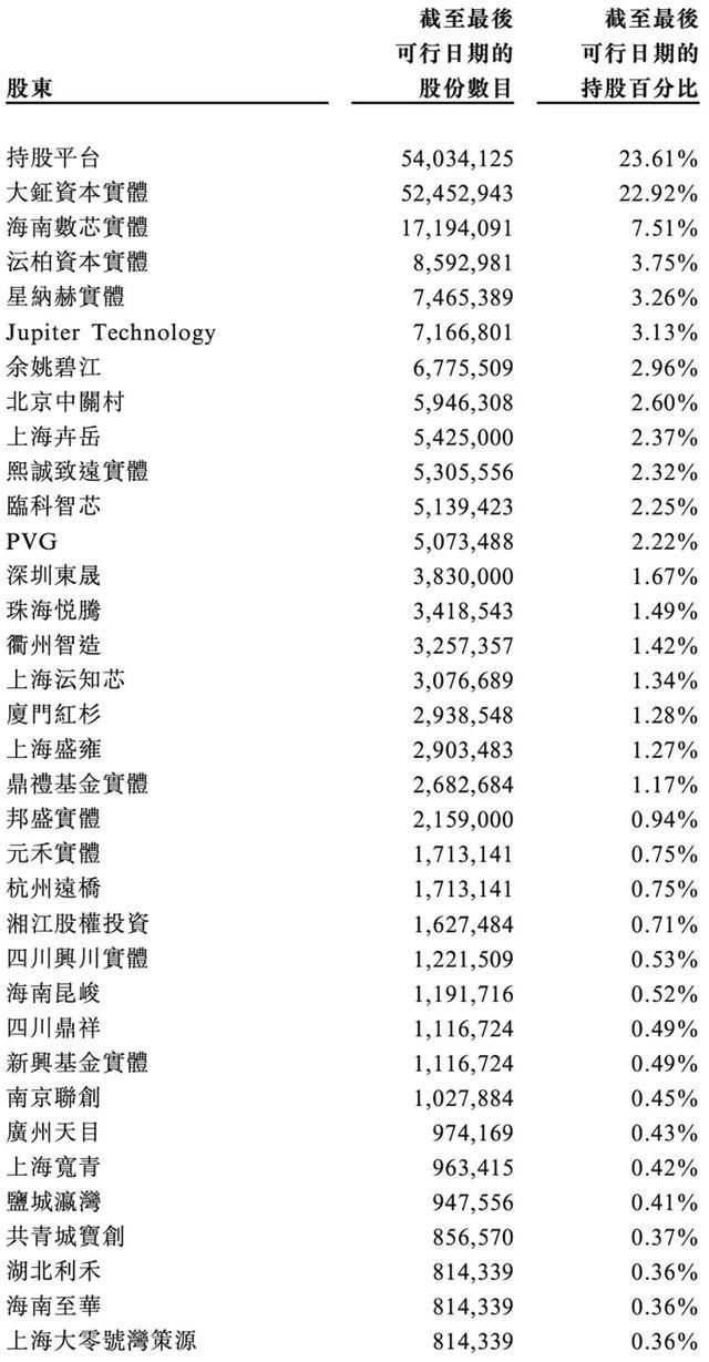 经过一系列股权变动,截至最后可行日期,单一最大股东集团合共持有天数智芯已发行股本总额约23.61%。