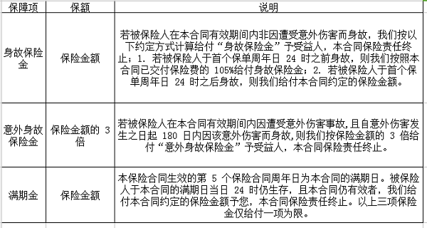 一次交费,5年稳健预期年化预期收益;三重保障,最高达4.5倍保费;年年享分红,预期年化预期收益添惊喜;保单能借款,最高可借现金价值的90%;18-60周岁均可投保,最低1万元保费起售。