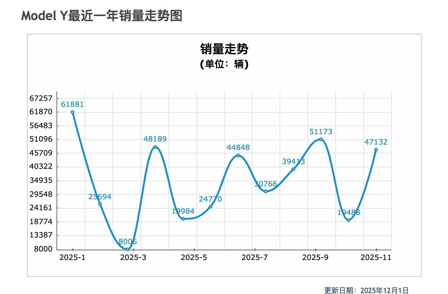 Model Y 的销量波动,或许也是中国新能源产品不断演进的缩影。特斯拉已经完成了「鲶鱼」的历史使命,若无下一代产品或重大技术突破,Model Y 很可能长期徘徊在 45–50 万辆/年的「稳态区间」,成为一座坚固但不再扩张的孤岛。