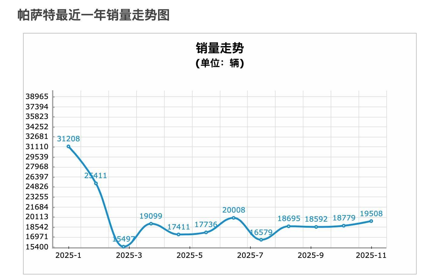 我们一直以来通常认为燃油车在溃败,表面上看,电动化浪潮席卷一切,但细看销量数据,会发现一个反直觉的现象,2023 年,两款车型全年销量分别约为 19 万辆和 18.9 万辆;而到了 2025 年前 11 个月,帕萨特已售出 23.8 万辆,迈腾也达到 20.2 万辆。是榜单上极少数还能维持 20 万+年销量的合资 B 级车。