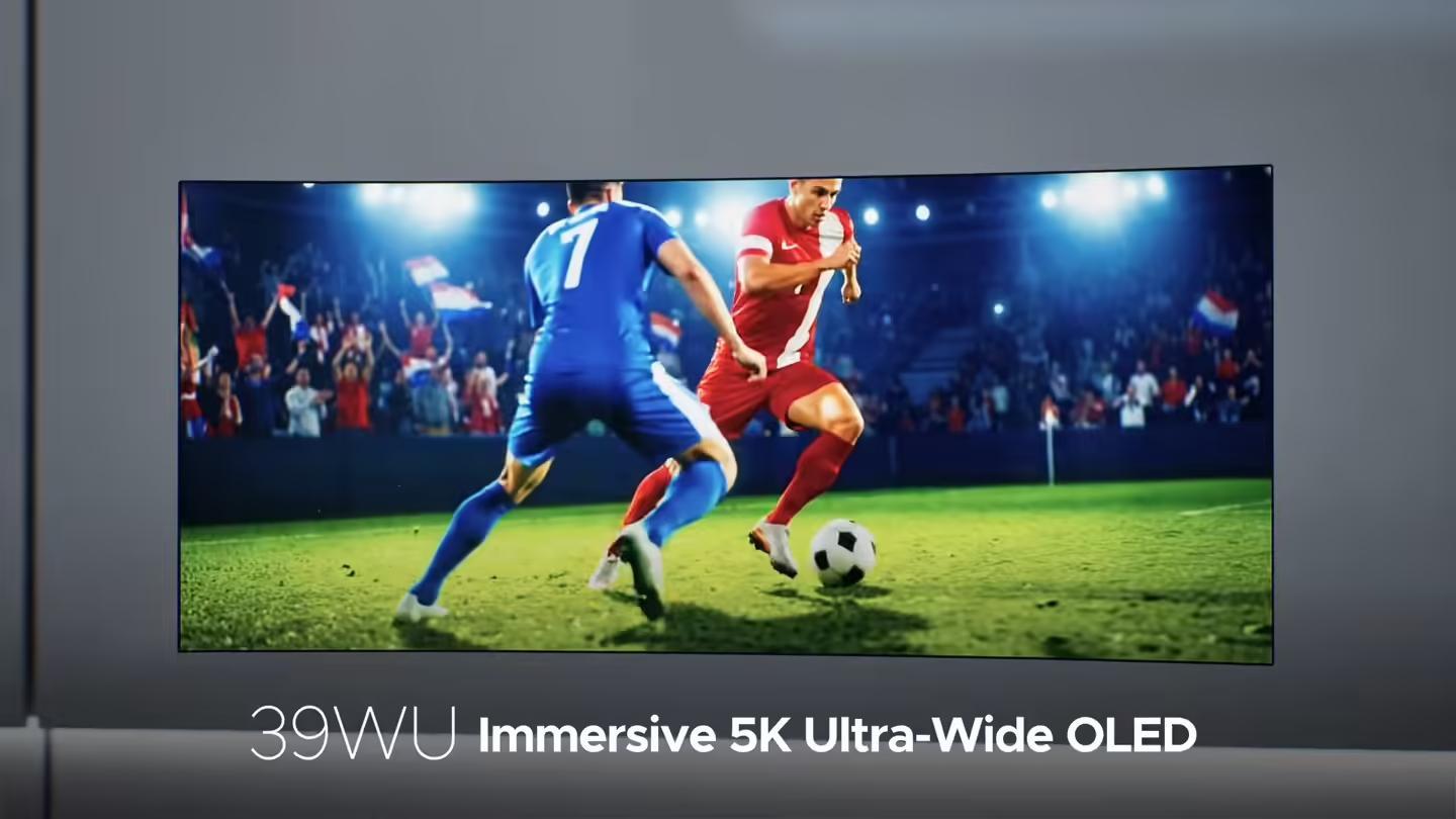 而在产品方面,LG Display 预告了 39WU 和 27U 两款面板,39 英寸级的前者长 5K 且为曲面屏(预计为 5K2K 规格),27 英寸级的后者则支持 UHD 高分辨率。