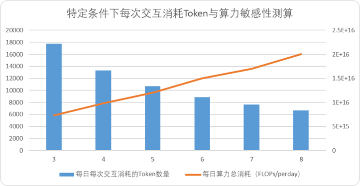 图:基于特定条件下的Tokens消耗与算力关系测算,来源:中泰证券,锦缎整理