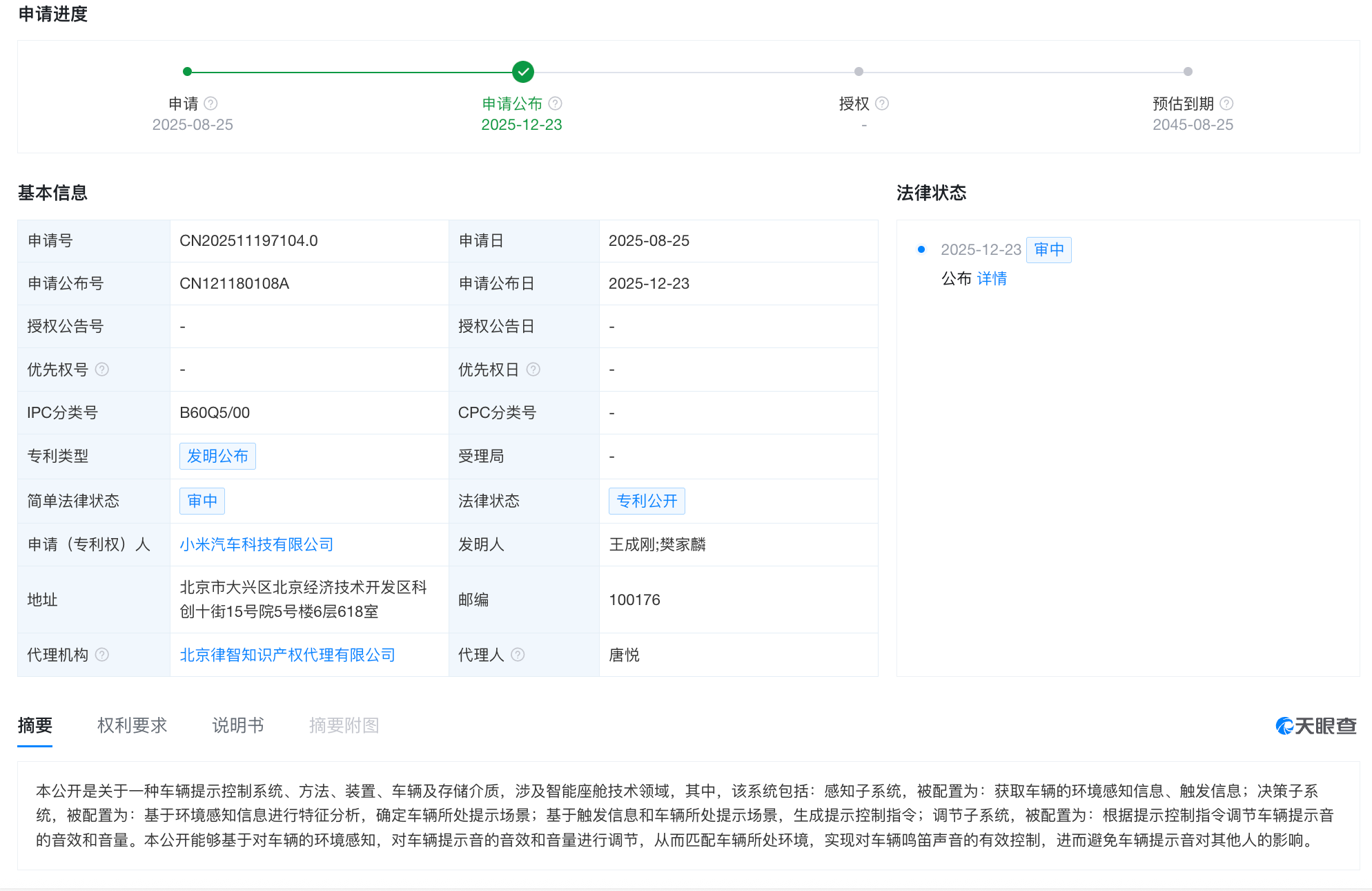 凤凰网科技讯 12月24日,天眼查显示,近日,小米汽车科技有限公司“车辆提示控制系统、方法、装置、车辆及存储介质”专利公布。专利摘要显示,该系统包括:感知子系统,被配置为:获取车辆的环境感知信息、触发信息;决策子系统,被配置为:基于环境感知信息进行特征分析,确定车辆所处提示场景;基于触发信息和车辆所处提示场景,生成提示控制指令;调节子系统,被配置为:根据提示控制指令调节车辆提示音的音效和音量。