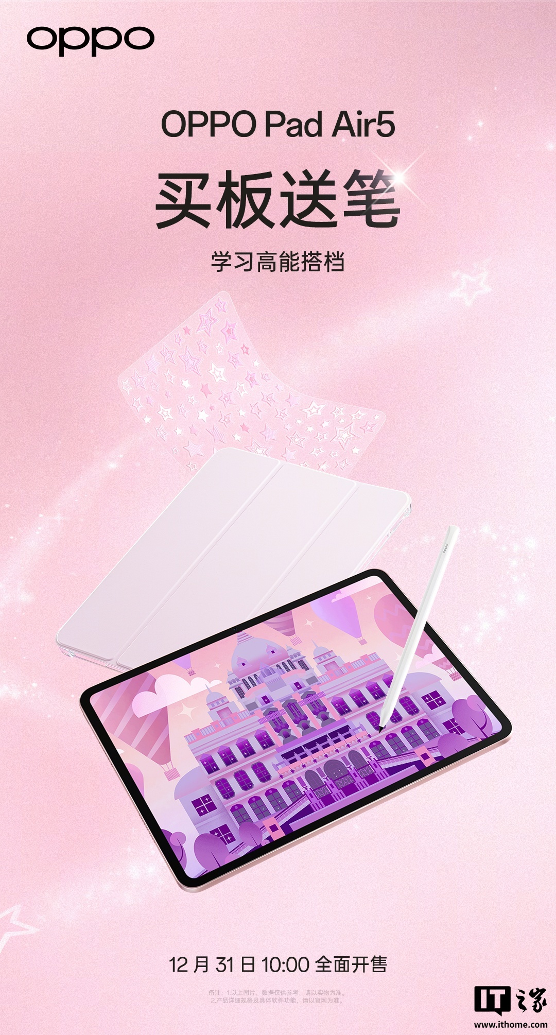 此外,购买 OPPO Pad Air5 平板,赠送保护壳、星星贴纸、官方手写笔。