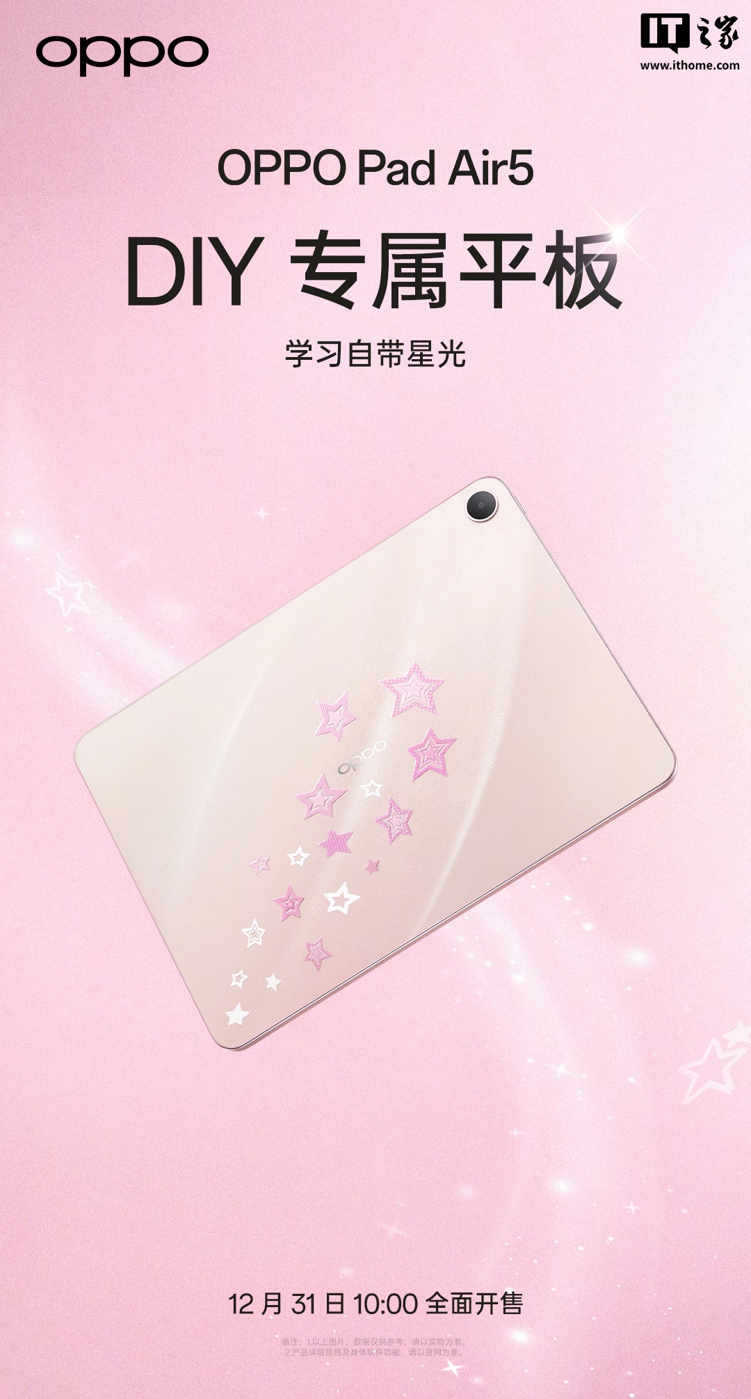 OPPO Pad Air5 可选星光粉、深空灰两款配色;搭载 12.1 英寸 2.8K 屏,支持 900 尼特亮度,可选柔光版;配有 10050mAh 电池,支持手写笔。