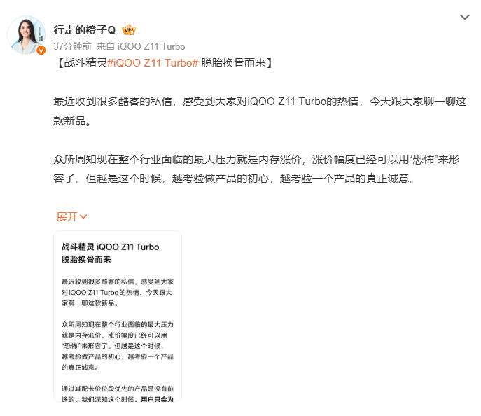 凤凰网科技讯 12月25日,iQOO Z系列产品经理邢程介绍iQOO Z11 Turbo。该产品定位为Turbo系列的顶配版本,主打在特定价位段内集成高性能、影像与设计。