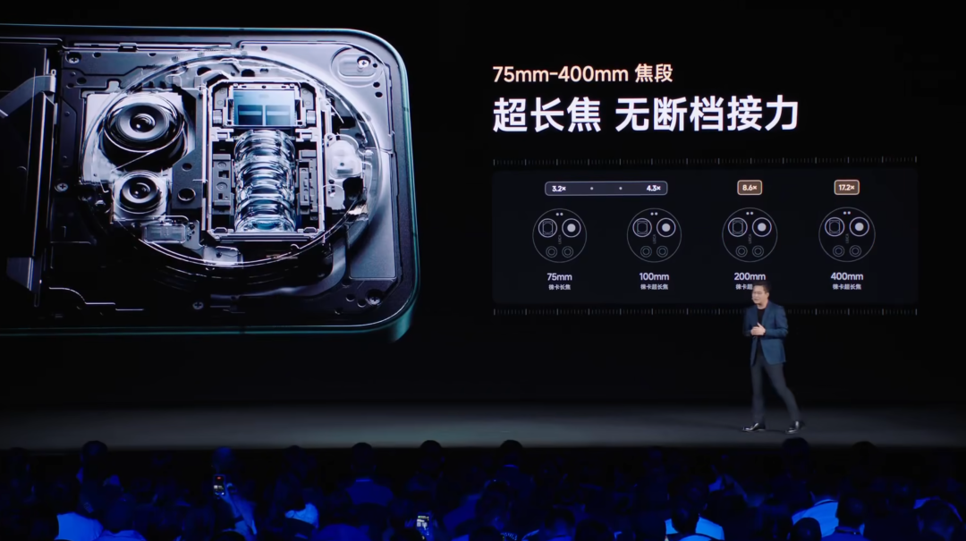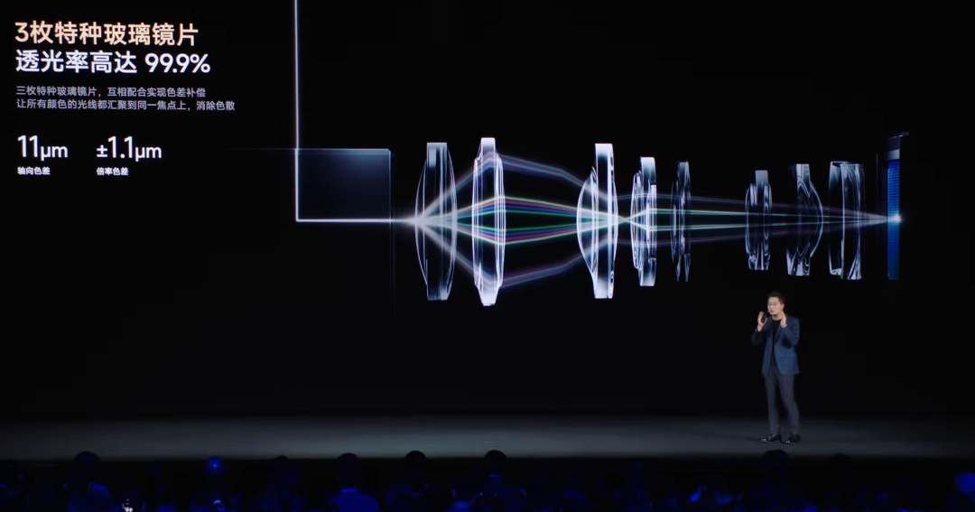 小米这次使用了一颗 2 亿像素的大底长焦,这颗长焦使用了 “ 对焦 + 变焦 ” 双浮动镜组,支持 70-100mm 范围内的连续光学变焦,还拿到了徕卡 APO 光学认证。