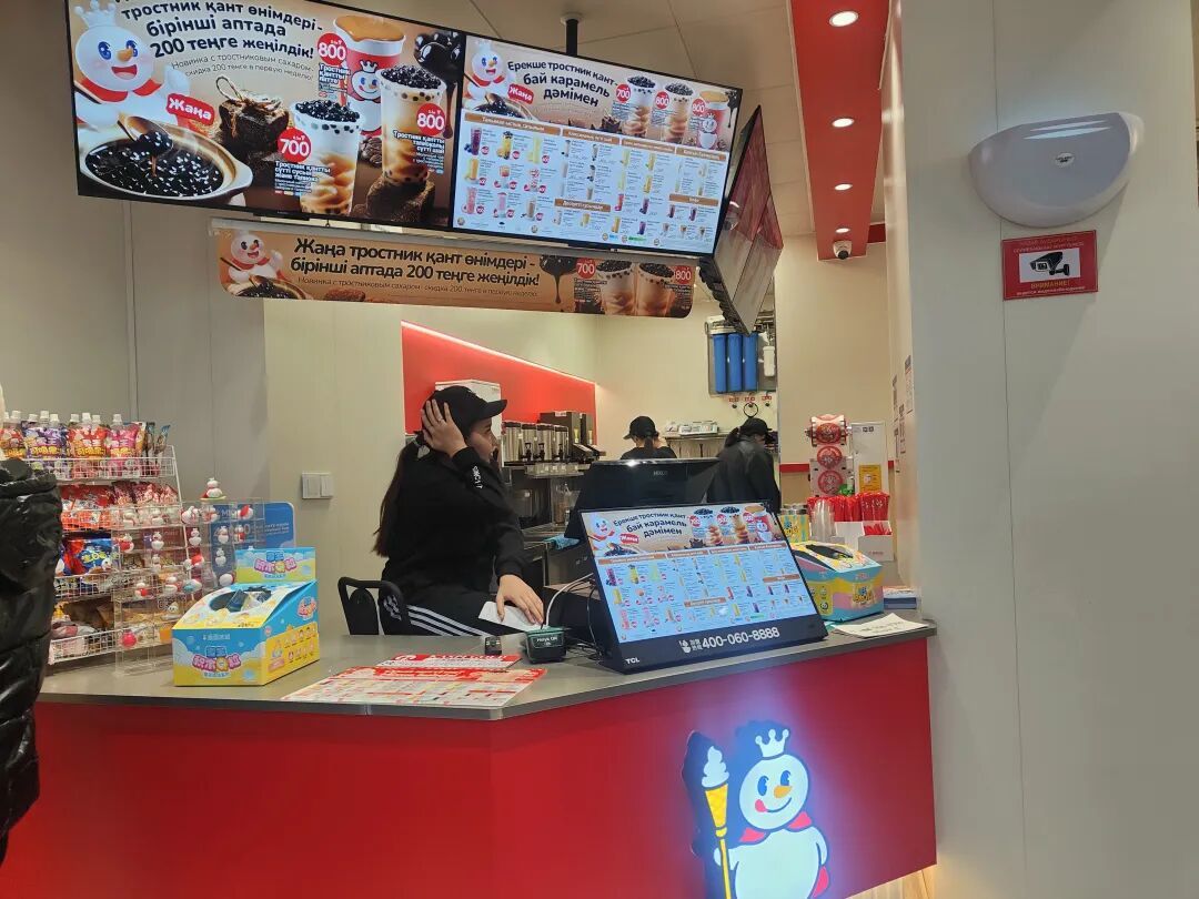 在跟店员交流中霞光社得知,蜜雪冰城约一年前开始进入中亚市场,已经在哈萨克斯坦开了十多家门店,此外在乌兹别克斯坦也有门店。目前,其正处在扩张早期。