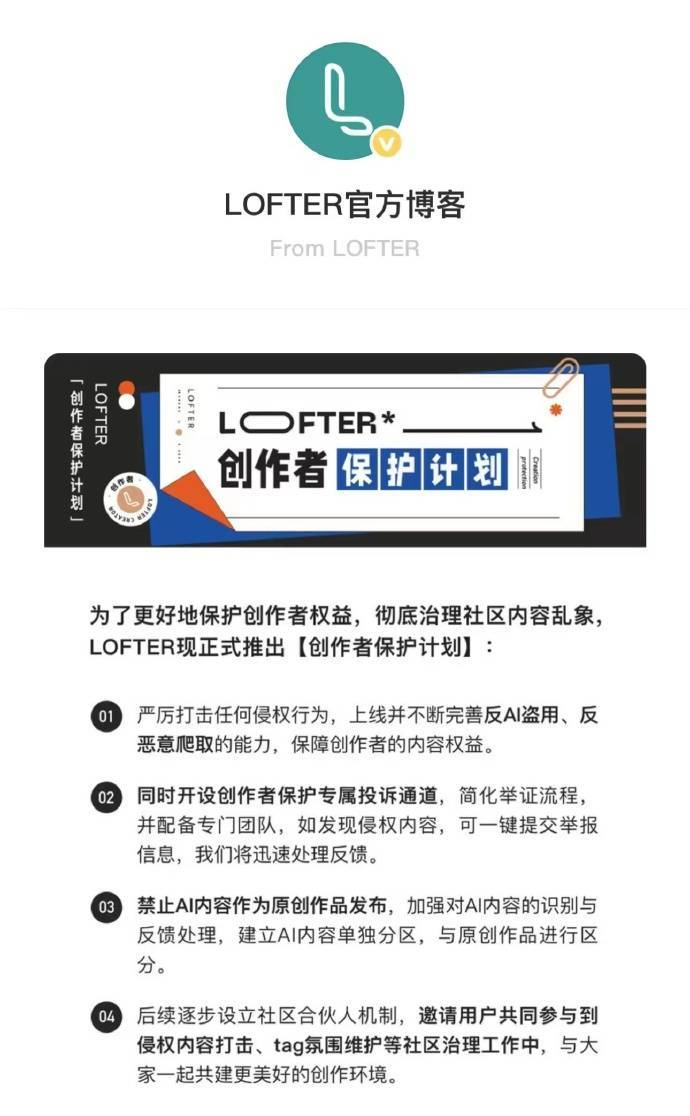 虽然官方连续两次声明「训练集来自开源数据,没有使用用户作品」,但许多创作者纷纷宣布「删号退出」。最终,LOFTER 在 3 月 10 日彻底下架了该 AI 功能,并启动「创作者保护计划」。