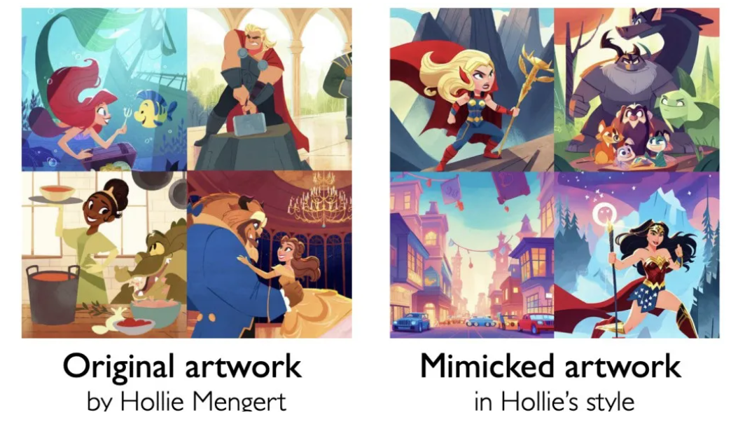 要知道,这种独特风格是他们耗费数年、甚至数十年打磨的艺术灵魂,但 AI 却只需抓取几十张作品、花几个小时训练,就能轻松「复制」。可按照很多国家的现行法律多不认定风格复制侵权,形同合法抢劫。