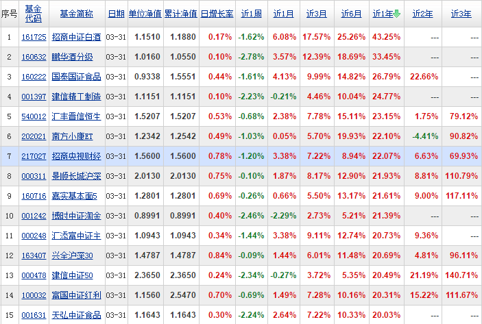 2017年指数基金排名
