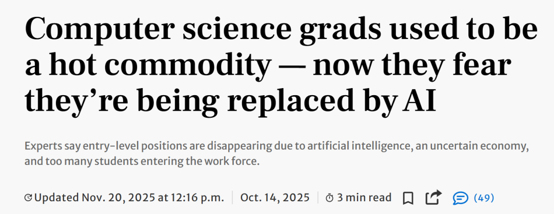 而且AI,也没有给年轻的CS毕业生们留下丝毫活路。