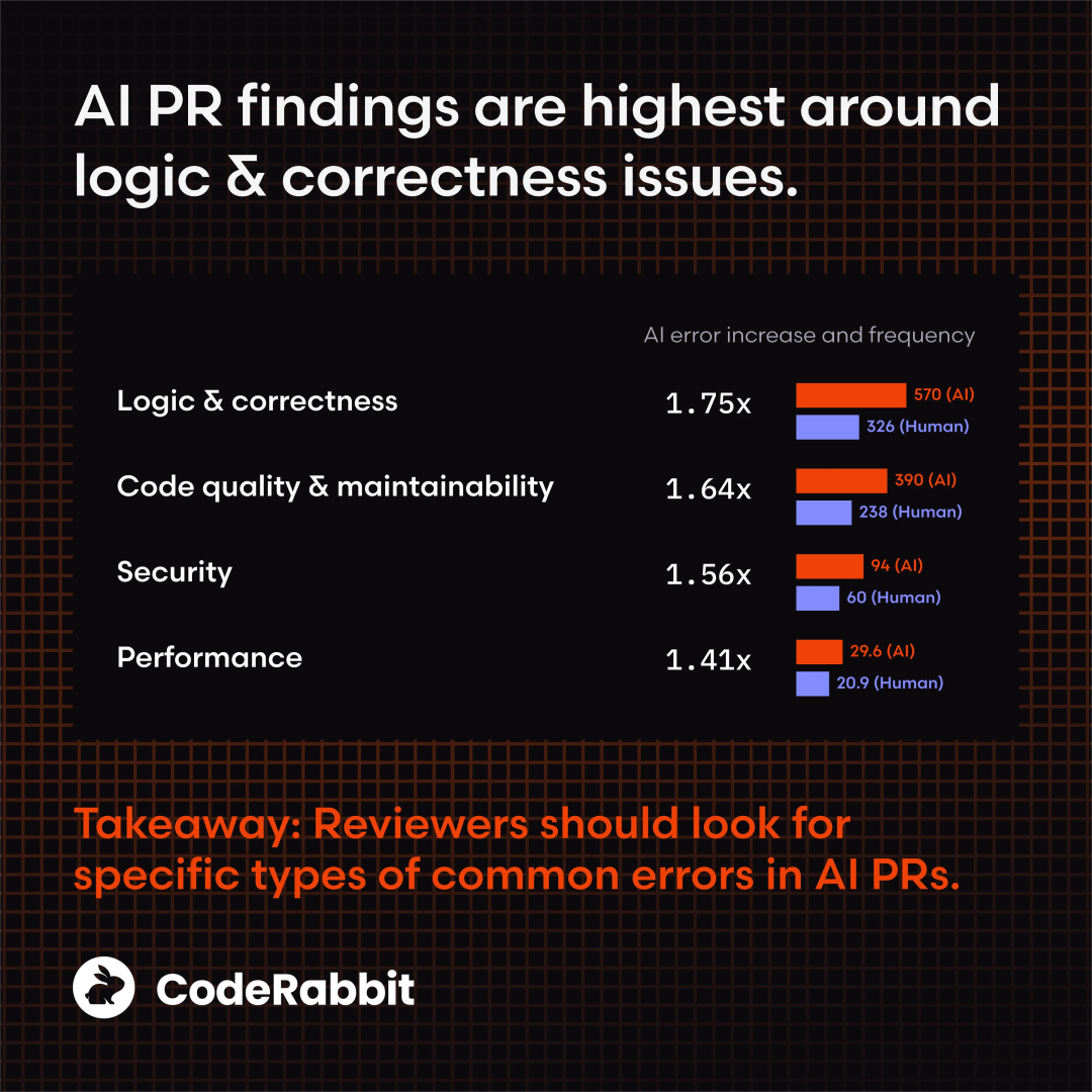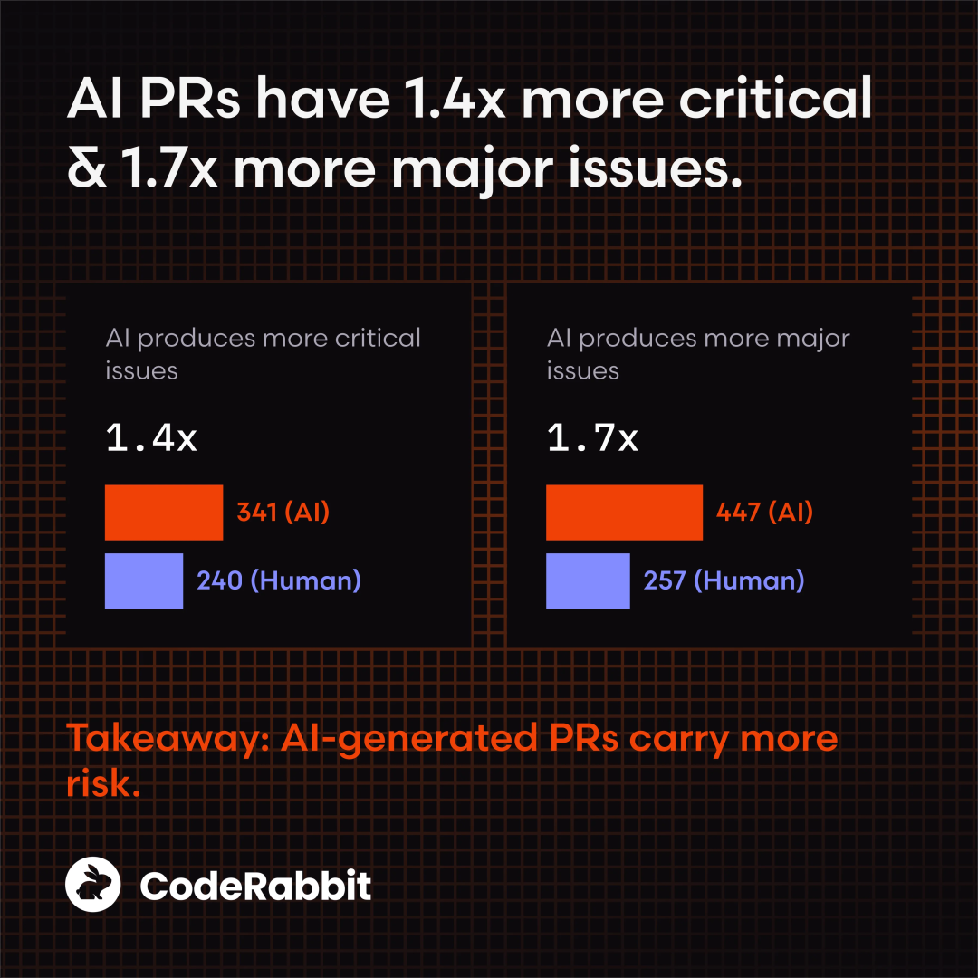 CodeRabbit分析了470个代码合并请求(Pull Request),得出了一个量化的结论: