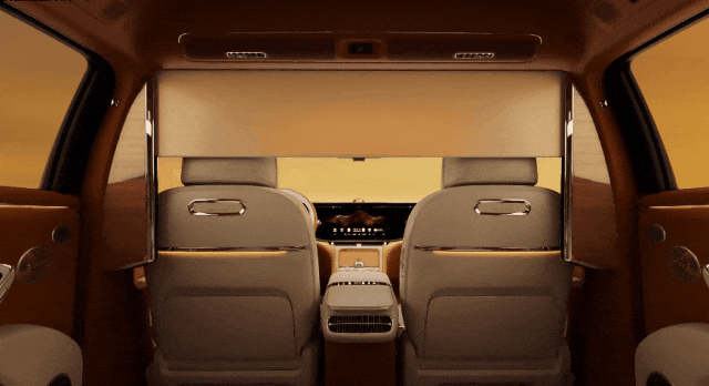 再比如,很多豪华轿车上都有前后排中间的隔断设计,几乎都是简单的用屏幕和幕墙做了区隔。