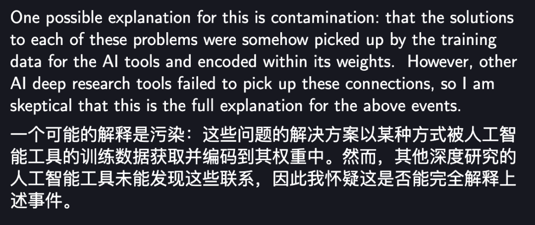 这就完美解释了为什么AI能解决这些问题,且这些问题恰好都已经在文献里有了答案。