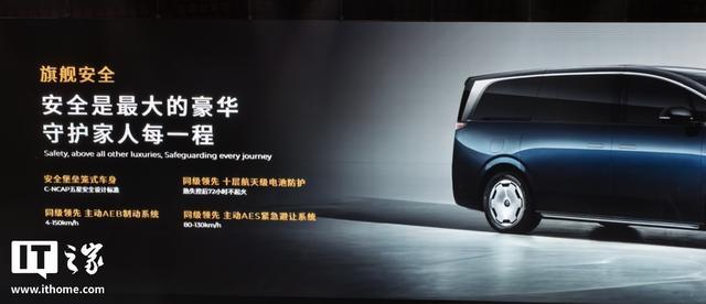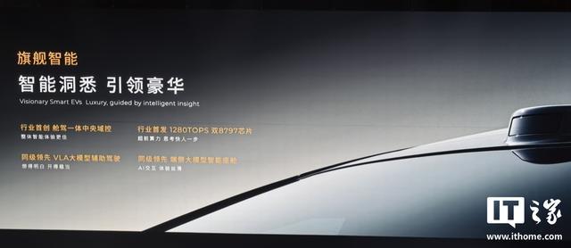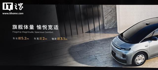 IT之家从发布会获悉,该车拥有超 5.2m 车长、近 2m 车宽、超 3.1m 轴距,前脸配备 AGS 主动进气格栅,百万像素 DLP 投影大灯;侧面采用数字感性曲面设计,配备平流层纯平侧窗;车顶配备巨幕天窗,紫外线隔绝率 > 99.9%。此外,该车还配备 79 英寸向往之境轮毂,搭配米其林浩悦 5E 高性能轮胎,车尾配备 ISD 智慧交互灯幕。