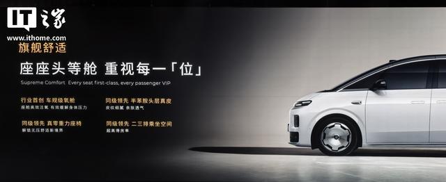 座舱方面,该车搭载行业首创车规级氧舱、同级领先半苯胺头层真皮、同级领先真零重力座椅、同级领先二三排乘坐空间、行业首创舱驾一体中央域控、行业首发 1280TOPS 双 8797 芯片、同级领先 VLA 大模型辅助驾驶、同级领先端侧大模型智能座舱。