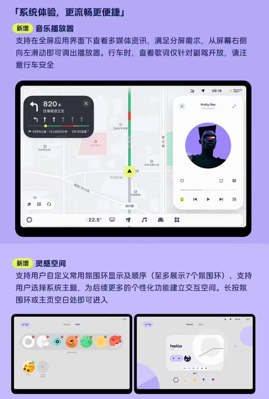 新增胎压问答:支持胎压状态查询及胎压校准页面跳转新增三重奏灯语,支持 lumo 点亮四种驻车灯语,如“来个心动灯语”;