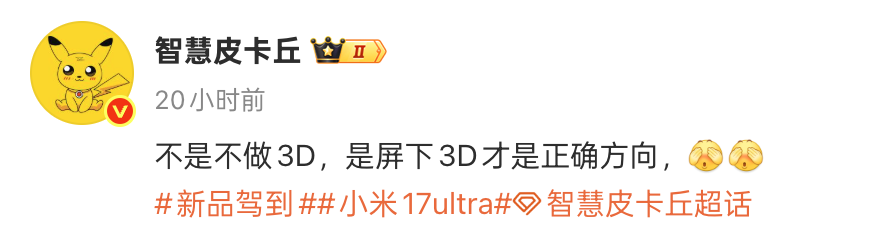 小米果断放弃了滑盖,用上了方向正确的 CUP 屏下摄像头方案。