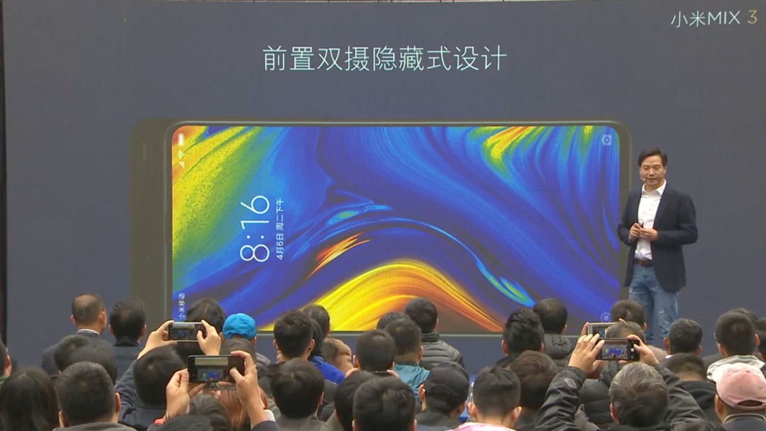 小米 MIX 3 为了极致的全面屏设计,采用了磁动力滑轨设计。