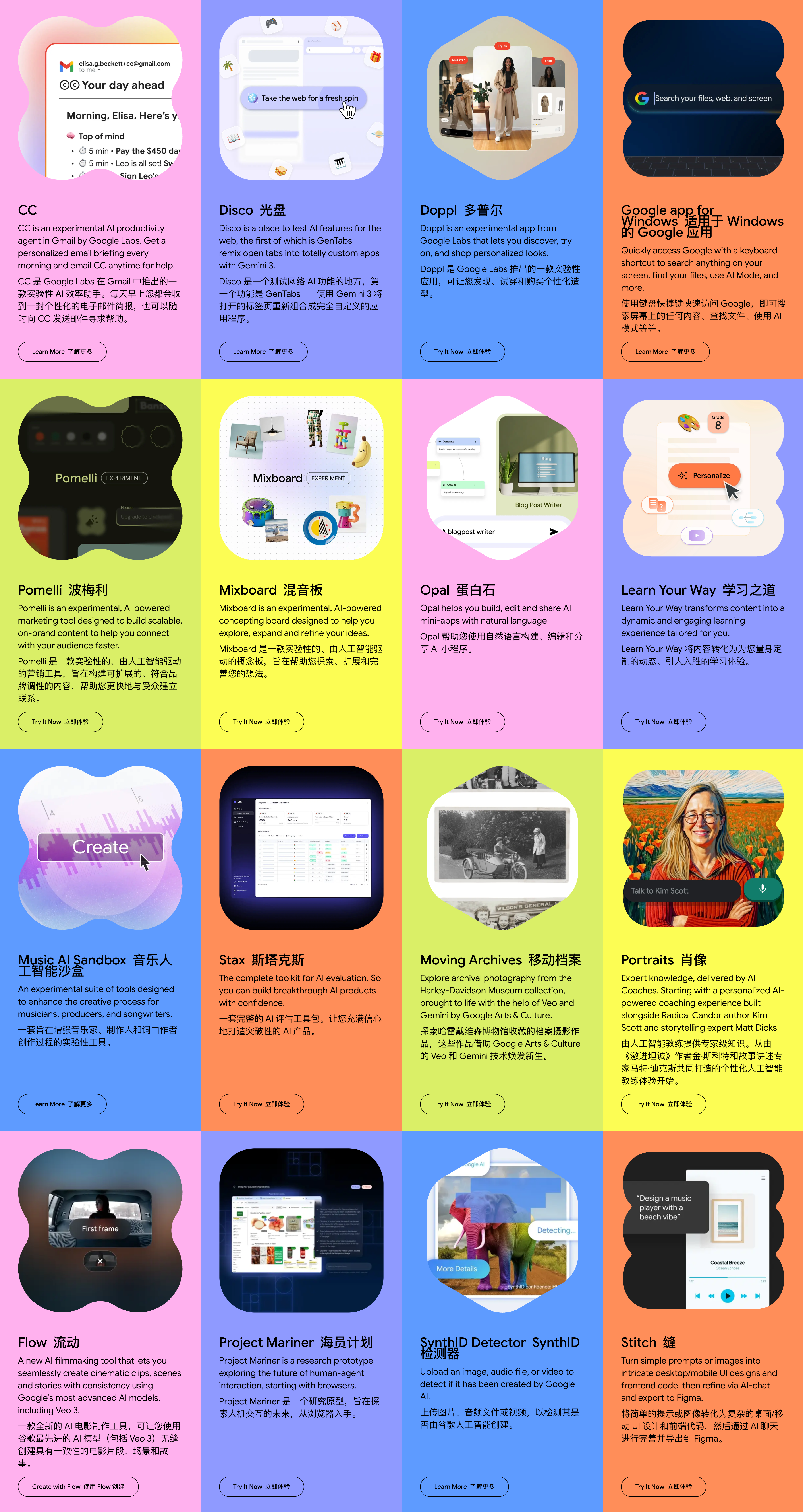 其中,大部分的工具都可以免费使用,尤其是 Google 实验室的相关产品,由于还在测试阶段,所以基本上限制较少,但大多只支持美国地区。