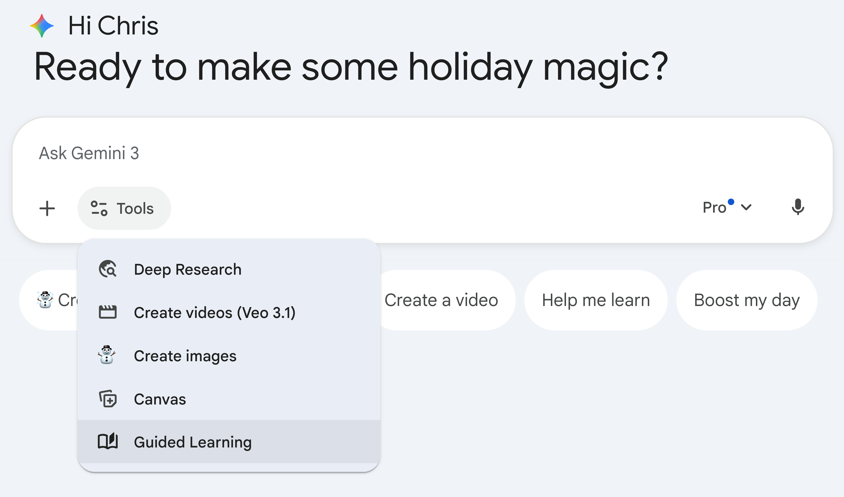 引导式学习、画布,Gemini 的这些功能,都可以在同一个对话里面随时切换。