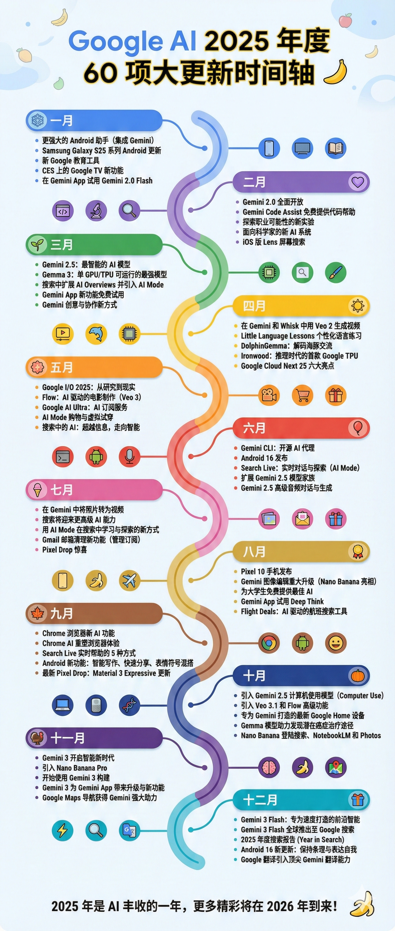 年末(Gemini 3.0): 11 月,Google 祭出了年度大招——Gemini 3,新一代的智能基座模型,标志着 AI 的理解和推理能力,彻底进入了一个全新的台阶。