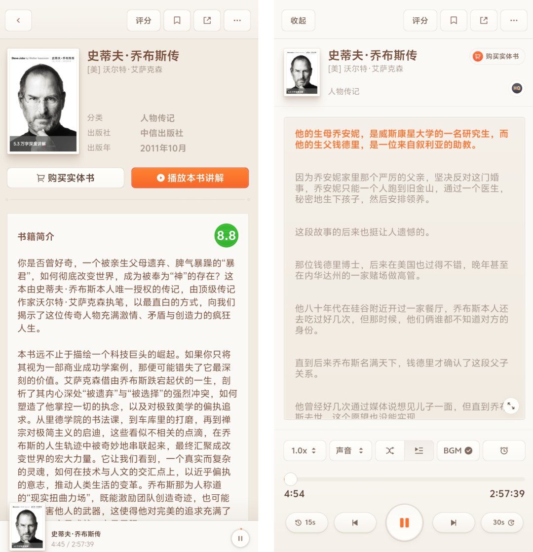 和传统听书只做文字搬运工有所不同,「且听」主打用 AI 补充书本背景、延伸知识点,帮用户搭起完整的认知框架。
