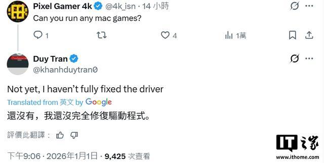 Duy Tran 表示,他所移植的系统搭载了 M4 桌面端芯片的原生驱动程序,并针对 A18 移动端芯片打上了部分补丁。