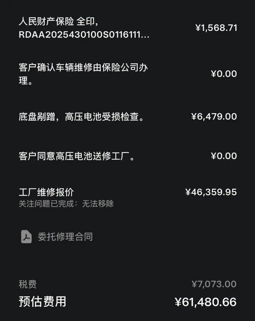 如果涉及到三电系统等核心部件,成本会高出更多,如果电池受损,维修费用甚至可能逼近整车价格。