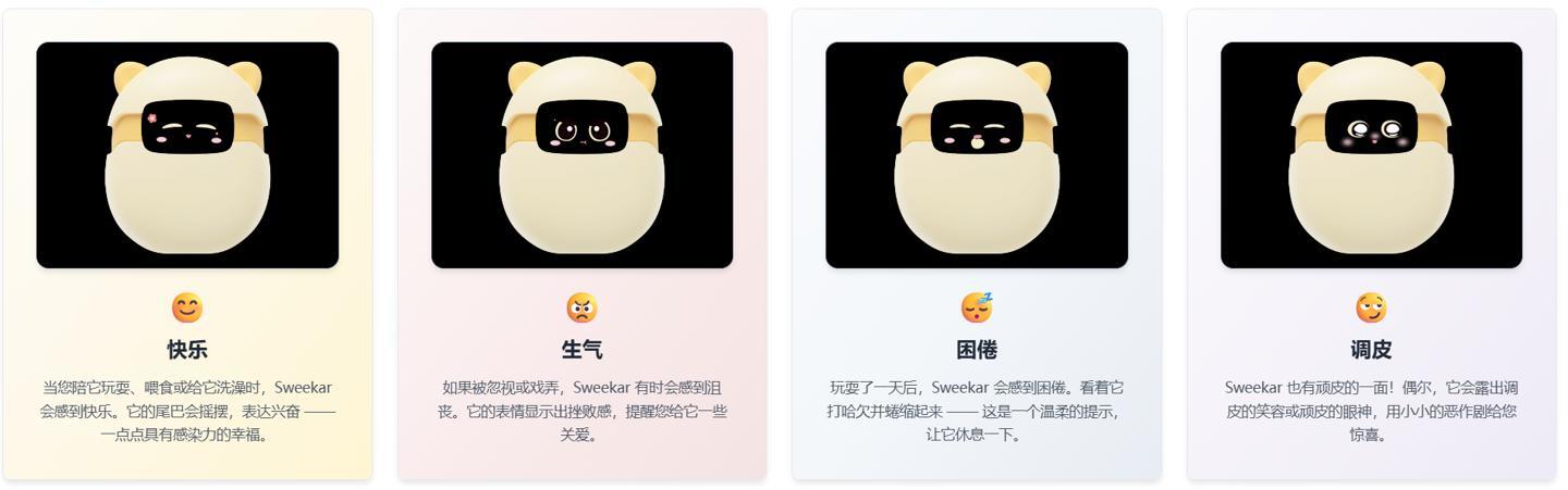 Sweekar 是一款内置 AI 的掌心大小玩具宠物,外形是一个可爱的蛋形设备,有耳朵和一个屏幕作为面部。