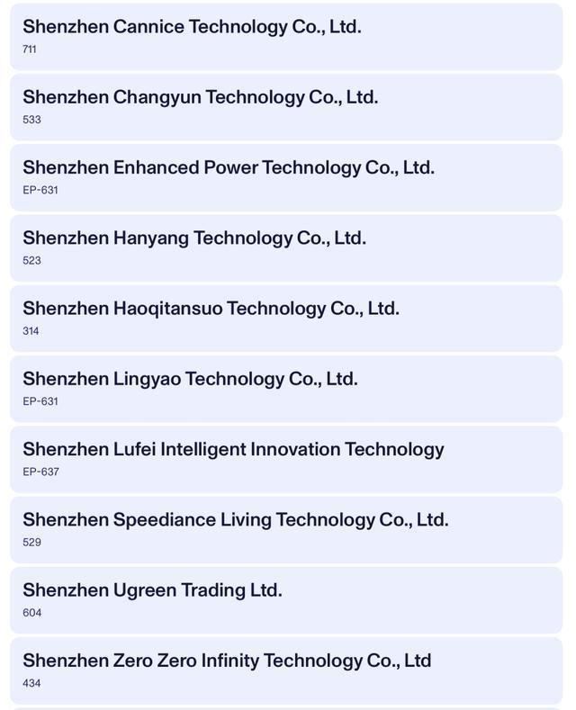 全场来看,「深圳牌」企业都可以组一个超级团了,这还不包括那些名称中不带「Shenzhen」一词的深圳企业。