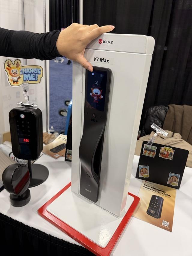国产智能门锁品牌鹿客,在今年的 CES 揭幕展上,带来了号称「全球首款实现量产的隔空充电无限续航真 AI 智能锁」——Lockin V7 Max。