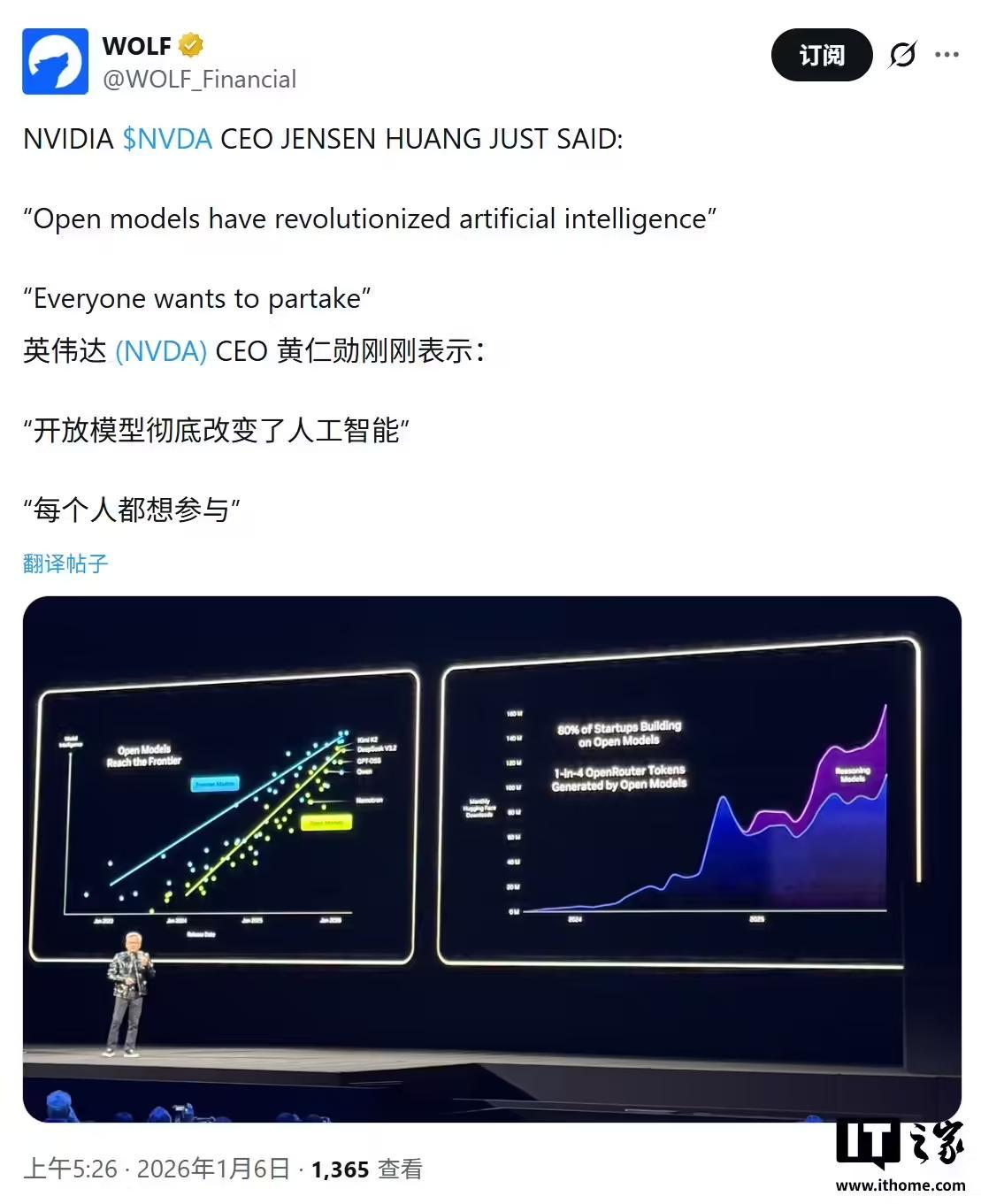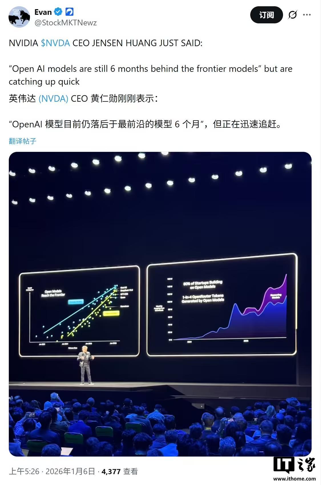 对于开源 AI 模型,黄仁勋认为相比较最前沿的 AI 模型,开源模型落后约 6 个月左右,但这个距离正逐步缩短,并表示开源模型彻底改变了人工智能,吸引所有人参与其中。