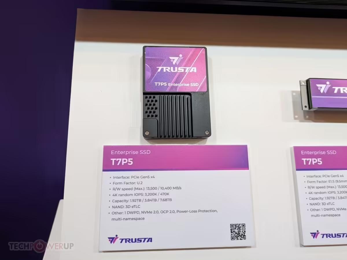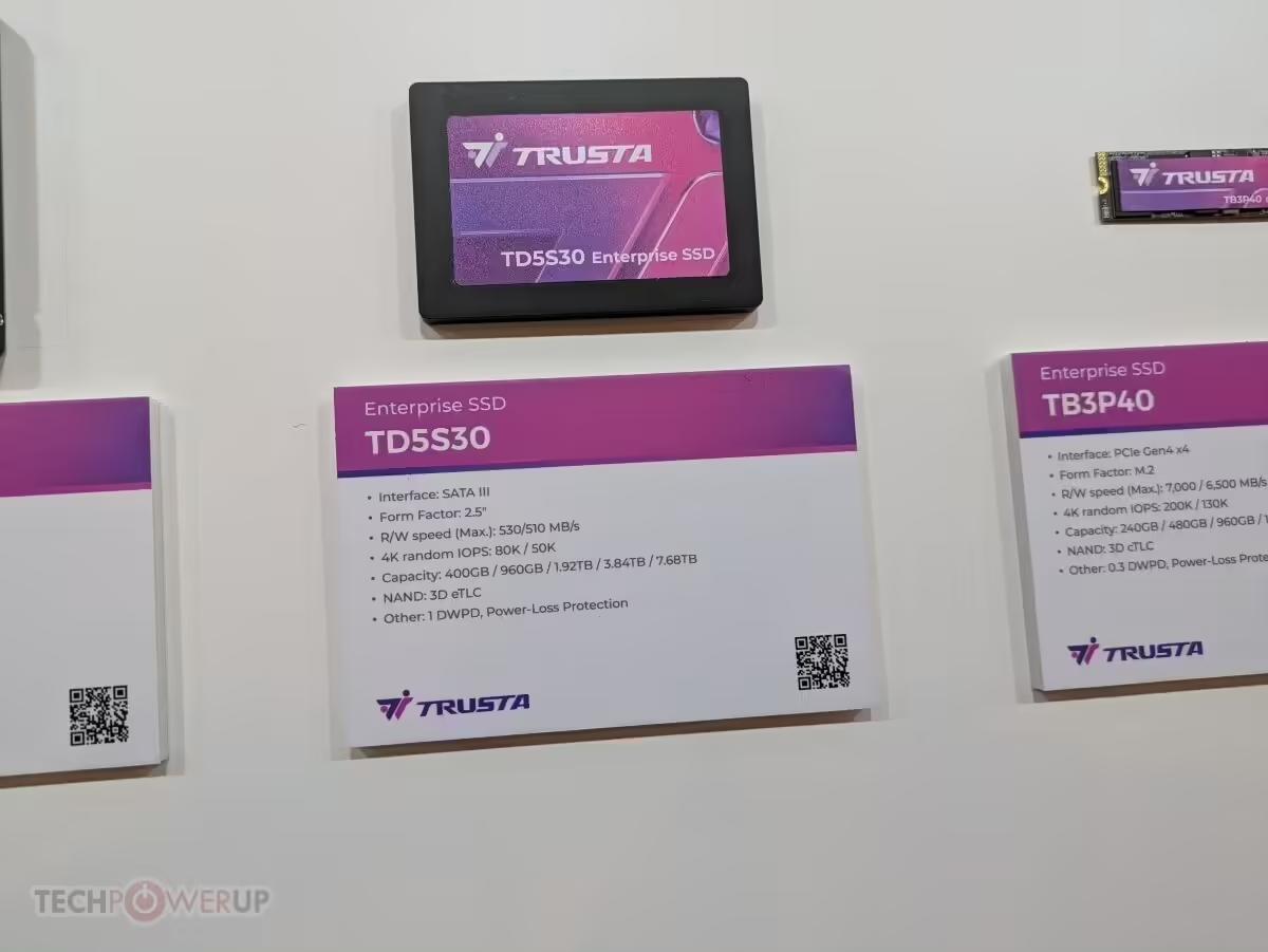 除 PCIe 5.0 产品外,TRUSTA 也同步展出了基于 SATA III 与 PCIe Gen 4 x4 接口的多款企业级 SSD 方案。