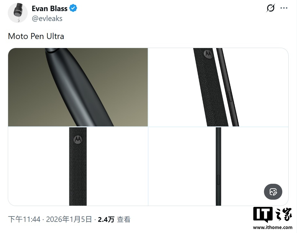 IT之家 1 月 6 日消息,消息源 Evan Blass(@evleaks)今天(1 月 6 日)在 X 平台发布推文,分享了系列图片,展示了摩托罗拉旗下 moto 品牌的首款大折叠手机 Razr Fold。