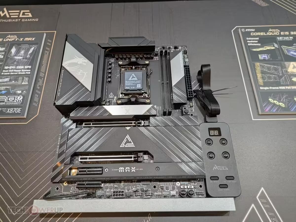 除了英特尔平台,微星在 AMD 阵营的布局也同样激进。现场展示的 UNIFY-X X870E 主板已进入定型阶段。