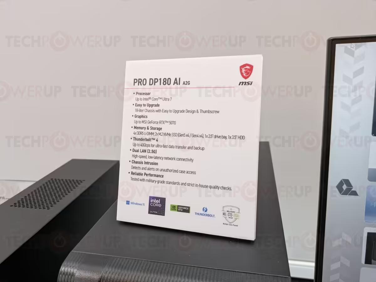 微星推出了 18 升体积的 Pro DP180 AI 工作站,搭载 Intel 最新 Core Ultra 7 处理器及桌面版 NVIDIA RTX 5070 显卡,IT之家附上相关图片如下: